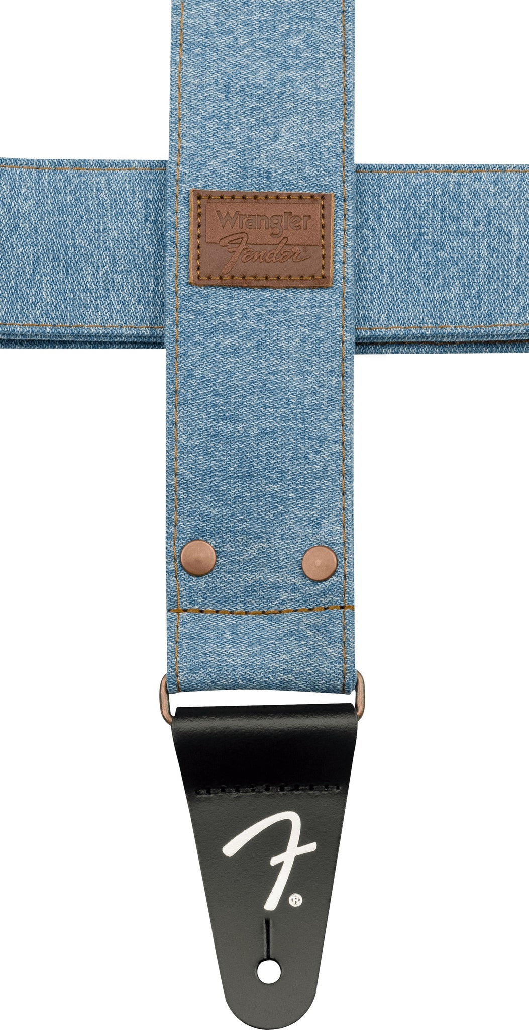 Genuine Fender® x Wrangler® Riveted Denim Strap, Light Indigo, 099-0638-002