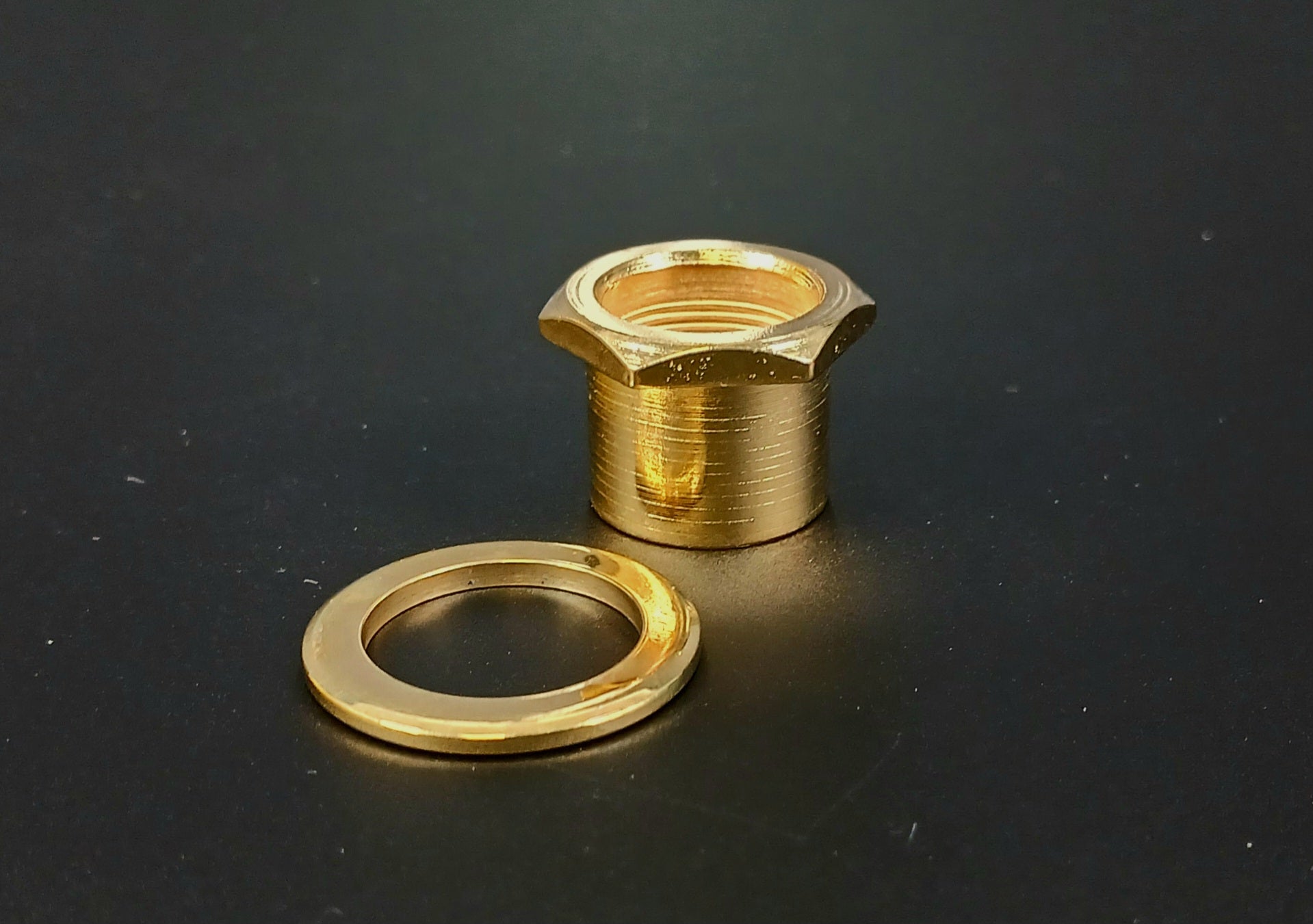 Genuine Hipshot Bass Tuner ADAPTER BUSHING GOLD - 1/2" USA ULTRALITE to 5/8" (16mm ) Headstock Hole - 0206629NUT-G
