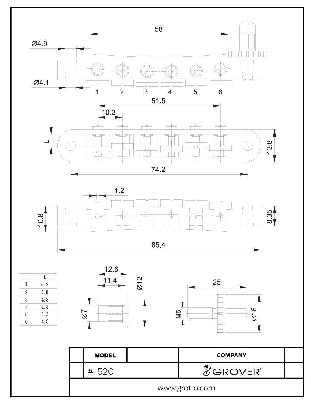 The Grover Tune-O-Matic style bridge is a direct original equipment replacement for all guitars utilizing this type. The notched saddles can be individually adjusted with the simple turn of a screw. Each bridge comes with two inserts and two thumbwheels for mounting and adjusting.