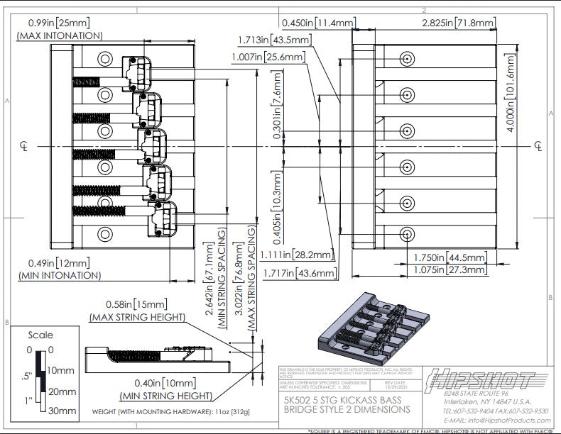 Following the wildly successful 4 string Hipshot MassKicker™ bridge, lovingly dedicated to the granddaddy of high mass bridges, Hipshot® is proud to offer the 5 String MassKicker™ Bass Bridge.