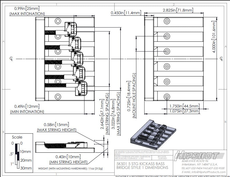 Following the wildly successful 4 string Hipshot MassKicker™ bridge, lovingly dedicated to the granddaddy of high mass bridges, Hipshot® is proud to offer the 5 String MassKicker™ Bass Bridge.