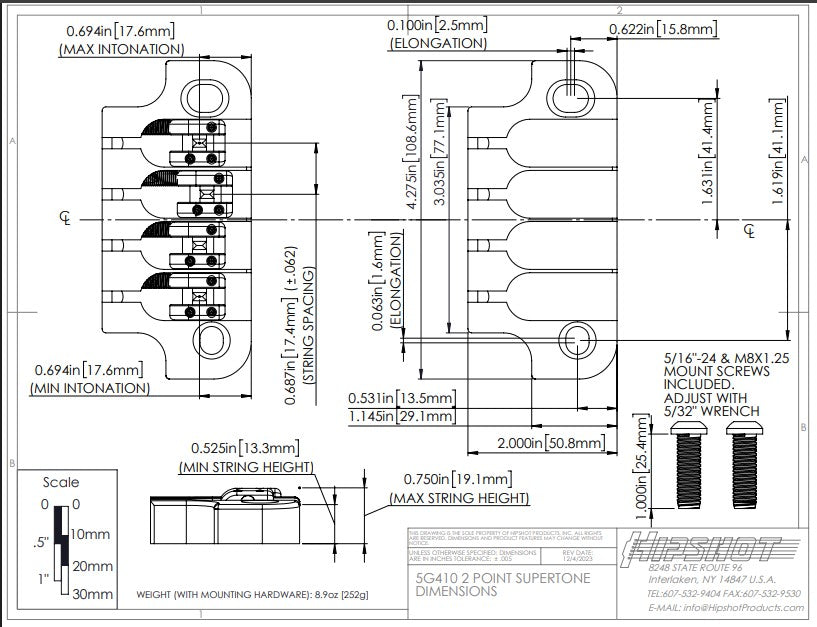 - Innovative micro-adjust saddle design allows for an additional 1/16" [1.5mm] of side-to-side adjustment for even greater string spacing possibilities