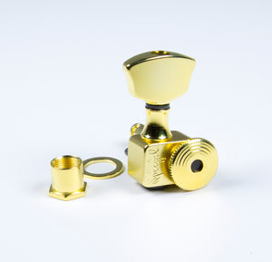 These are genuine, factory-fresh Sperzel Trim-Lok tuners, for 3 per side headstocks finished in gold plate and with full manufacturer warranty. These tuners have non-staggered posts, suitable for 3 per side headstocks that tilt back, similar to a Les Paul or SG.