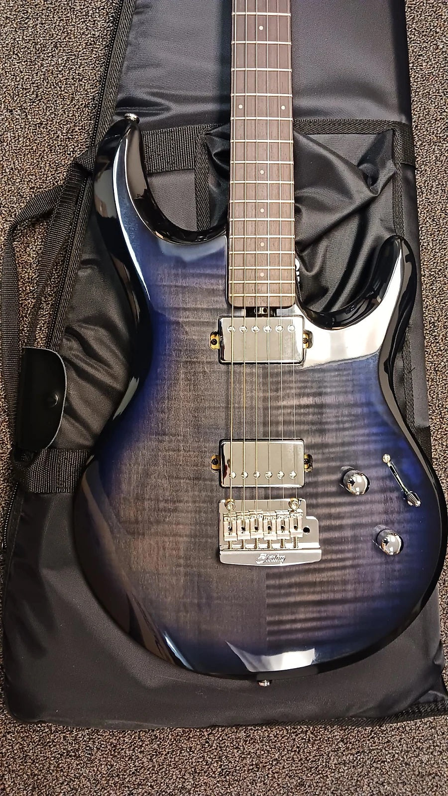 Sterling by Music Man Luke, Flame Maple Top, Blueberry Burst Manufacturers Part Number: LK100-BLB